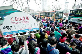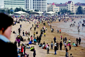 | 很多来自胶南、黄岛的市民游玩结束后准备乘坐隧道公交返回。 本报记者 张晓鹏 摄 |  | 崂山大河东客服中心的停车场停满了车。 本报通讯员 王晶晶 摄 |  | 天气晴暖,第一海水浴场的游客多起来。 本报记者 张晓鹏 摄 |