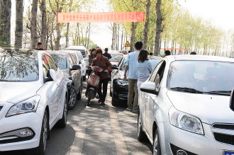 5日下午三点多,不断有私家车辆赶往刘村梨园游玩。通往景区的林荫道路上,被不同方向的私家车和游人挤得水泄不通。现场虽有工作人员拿着对讲机进行指挥和疏通,架不住人多车密。不少市民表示,到了旅游旺季,旅游景区在做好景区景观规划养护的同时,多多拓展相关服务功能也是必要的。 本报记者 甘倩茹 摄影报道