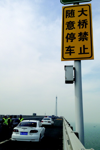 | 执勤民警对一名违停司机进行批评教育。 |  | 尽管大桥上有禁停标识,但个别车主仍违法停靠在应急车道内。 |  | 大桥上57处监控,可对大桥实现全覆盖监控。 |