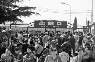 4月7日,清明小长假最后一天,火车站、汽车站迎来返程高峰。图为“忙碌”的威海火车站出站口。 本报见习记者 陈乃彰 摄影报道