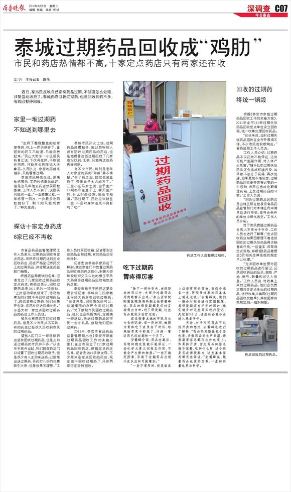 泰城过期药品回收成“鸡肋”