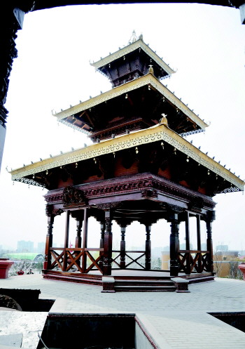 国际园中的尼泊尔展园。 本报记者 李泊静 摄
