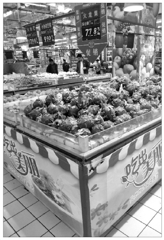 据记者了解,除了樱桃价格高以外,芒果也成了水果贵族,“去年才卖10块钱一斤,今年受南方台风的影响,一斤就卖18块钱。”随后记者在礼盒区看到,两个甜瓜的礼盒价格需要50元。“这两个甜瓜不到1斤,主要是靠卖相挣钱,它的样子特别像人参果。”水果区的工作人员说,有些水果就是卖新意,虽然价格高但是也有人买。