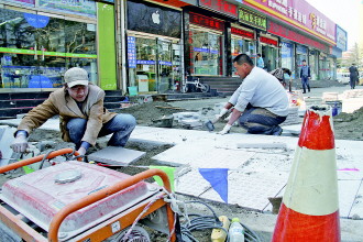 8日,环翠区昆明路人行道板正在施工改造。据了解,人行道改造面积约为8691平方米,总长960.9米,包括人行道板改造、路缘石改造、绿化带改造、井盖改造等,整个工程计划6月底完工。