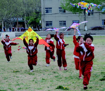 放风筝开始了,同学们在操场上牵线奔跑,风筝随着温暖的春风越飞越高,越飞越远。班主任曹老师介绍到,“清明节”也叫“风筝节”。在清明节放风筝,不仅丰富了孩子们对民族风俗的了解,而且在与大自然的亲密接触中也培养了同学间相互沟通、交流合作的能力。