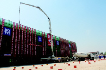 随后进行的是令人万分激动的封顶仪式。随着最后一罐混凝土浇筑完成,展厅建筑主体结构正式封顶,这标志着“中国(淄博)陶瓷产业总部基地”一期一阶段正式完成主体建筑任务。