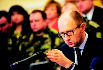 | 11日,在乌克兰顿涅茨克,乌总理亚采纽克在会议上发言。 新华社发
