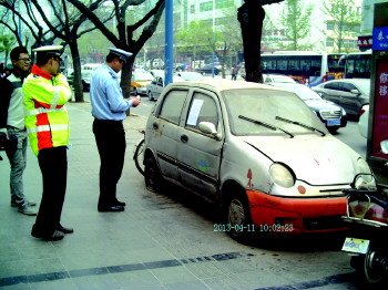 本报泰安4月13日讯(记者 曹剑) 10日至12日,泰安交警二大队在东岳大街、龙潭路、财源大街等路段,排查出34辆“僵尸车”,并张贴了清理通告。14日、15日,交警会再次排查,仍未主动清理的,交警部门直接拖走。 11日上午,交警二大队的四名民警来到火车站附近,在传统永和豆浆对面,一辆白色面包车停放在一堆垃圾旁边。这辆车虽然挂着车牌,但轮胎已经瘪了,变成了卖手机卡的流动营业厅,民警在车上贴上清理通知书。 在龙潭路,一辆类似于老年乐的四轮车放在非机动车道上,看起来已经很久没有挪动过。因为没有牌子,交警无法联系到车主,也在车窗位置贴上了清理通知书。 随后,民警又排查东岳大街德克士门口、公交公司门口、龙潭路肯德基门口、市委党校门口、乐园小区、东岳大街粮贸路路口等,共排查出20多辆“僵尸车”。交警二大队二中队中队长刘明介绍,从10日开始,中队在辖区集中排查三天,目前共排查出34辆“僵尸车”。“九成以上都是停放在路边或者人行道上,占道经营,变身卖手机卡或者流动充值的营业点,影响正常通行。”刘明说。 刘明说,排查出的“僵尸车”已经全部贴了清理通知书。通过车牌联系车主清理,对于没有车牌无法联系车主的,统一建立档案。“14日至15日,我们安排警力再排查一次,如果还没有清理的,直接拖走。” 据了解,泰安市城市环境综合指挥部下发文件,对主次干道(含两侧人行道、盲道)的“僵尸车”全面排查,采集车牌和车型、发动机号等信息,对比核实是否属于盗抢车辆。“一车一档”建立台账。4月15日之前,依然无人管理的,一律依法拖至专用停车场。