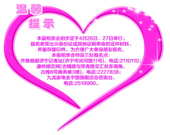 | “牵手春天”大型相亲会报名将持续至4月20日 |