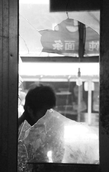| ▲店里被砸得乱七八糟,李女士当时拍了照片,15日她拿着当时的照片给记者看。 本报记者 李泊静 摄 |  | ◥店里的玻璃被砸了一个大窟窿。 本报记者 李泊静 摄 |