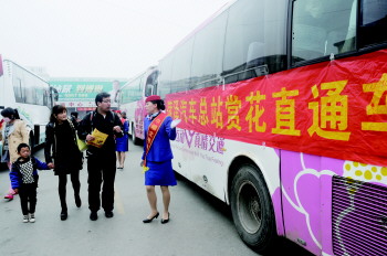 南来车辆,绕行广州路、长城路为宜 为便于游客避免城区遭遇堵车的困扰,交警将在菏泽市区外围道路分流和指引。 在人民路与南外环路口(佃户屯桥北侧)设置一级分流点,主要分流和指引大货车绕行南外环路、上海路或南外环路、昆明路。 在人民路与长江路口设置二级分流点,分流和引导驶往牡丹园方向的车辆绕行长江路、广州路、长城路、桂陵路,或绕行长江路、牡丹路,控制和减少驶入人民路的车辆。 黄河路与广州路口设置截流点,交警引导驶往牡丹园方向的车辆绕行广州路、长城路、桂陵路,禁止向西驶入黄河路。 昆明路与北外环路口设置分流点,禁止大货车向东通行;在220国道与临商路复线交叉口设置分流点,禁止大货车、拖拉机向西通行。 值得注意的是,以上各点禁止大货车、拖拉机驶往牡丹园方向。 人民路、长城路两侧可停放一排机动车 进园赏花在哪停车为宜?据交警介绍,林展馆广场以及牡丹园东门南侧周边有场地可停车的单位均作为临时停车场,人民路两侧、长城路两侧非机动车道各安排停放一排机动车辆。所有旅游大巴车一律停放在长城路两侧,不得停放在其它停车场地。 据介绍,从人民南路驶来的车辆一律停放在长城路两侧;从人民北路驶来的旅游大巴,游客在牡丹园东门和东北门下车,车辆经人民路与长城路口右转,停放在长城路两侧,牡丹园东门和东北门处,执勤民警要提示游客由牡丹园南门出牡丹园。 交警将加强牡丹园周边道路指挥疏导。在人民路与220国道路口至双河立交桥路段、黄河路与牡丹路口至人民路与牡丹北路口路段等路段,加强指挥疏导,减少交通拥堵。在牡丹园东门和东北门区域停车场和人民路、长城路两侧非机动车道停车饱和的情况下,人民路长江路口和人民路北外环路口立即控制车辆驶入人民路牡丹园路段。 汽车总站开通赏花直通车 在第二十三届菏泽国际牡丹文化旅游节召开之际,菏泽汽车总站12日起开通赏花直通车,而且代卖百花园门票,所有购票者都可免费乘坐。对于去曹州牡丹园的乘客,车站只收取2元钱乘车费。同时,为进一步宣传和树立“中国牡丹之都”城市形象,展示菏泽市“巾帼文明岗”服务人员的风采,菏泽市妇联在全市开展“巾帼文明展风采一流服务迎花会”活动。 “先生您好,是不是来菏泽看牡丹,菏泽汽车总站已开通赏花直通车,您可以直接从车站到牡丹园。”15日,菏泽汽车总站“小红帽”王晶正向外地和县区旅客介绍。 “菏泽国际牡丹文化旅游节到来之际,为能更好的为旅客服务,展示菏泽城市形象,菏泽汽车总站开通赏花直通车,游客每天上午8点至下午3点都可乘坐,发车班次根据游客量随时增减。另外,还特派两名‘小红帽’专门观花游客服务,导乘导购、搬运行李。”菏泽汽车站常务副站长魏炜说。