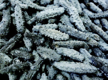 | 刚从海里捕捞出的海参。 |  | 从海里捕捞出的海参经原始加工,不含任何化学物品。 |  | 在莱州石虎嘴,工人们从10米深的海里捞海参。 |  | 约25斤鲜海参才能加工成1斤“赵老大”干海参。 |