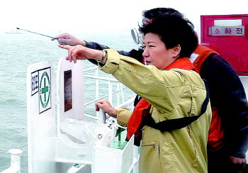 4月17日,朴槿惠搭乘海警警备舰艇,前往客轮沉没处进行勘察。