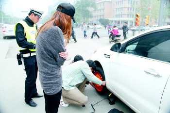 17日,在和平路上,一辆轿车被满地躲不开的井盖硌爆了轮胎,交警连忙来帮忙。和平路经历了一年的漫长整修,如今终于要熬出头了。