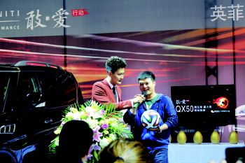 4月11日,英菲尼迪“敢爱倾城燃情献礼”活动在齐鲁车展落下帷幕。据悉,此次活动也为参加英菲尼迪QX50炫动泉城彩足球赢大奖的微信及微博网友颁奖。齐鲁车展期间,济南骐骥携英菲尼迪旗下所有车型亮相,包括:风尚运动型SUV英菲尼迪QX50,商务舱级豪华七座SUV英菲尼迪JX35,先锋跑车型SUV英菲尼迪QX70,陆上奢华专机全尺寸SUV英菲尼迪QX80,双门跑车/硬顶敞篷跑车英菲尼迪Q60,以及专为中国市场量身打造的、以人为本的豪华商务座驾英菲尼迪Q70L长轴距版。