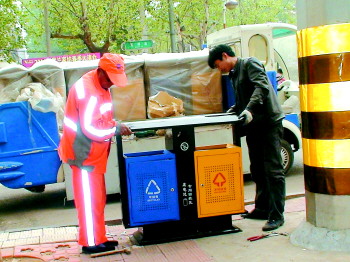 近日,长清区城管局、城管执法局对主城区内的200多个陈旧果皮箱进行了更换。新果皮箱主要是天蓝与金黄色相搭配,并采用不锈钢材质,饰面材料烤漆,根据垃圾分类设置双筒,并设有废电池专用回收孔。不仅美观,也方便了市民投放垃圾。