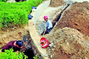 16日,在东岸嘉园东侧,港华燃气有限公司的施工队已经开始施工。 见习记者 任丽媛 摄