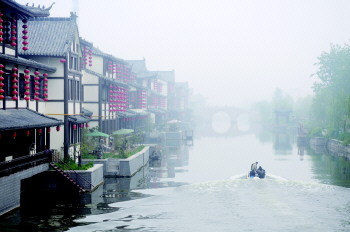 4月17日,浓重的水汽弥漫城区,漫步其中别有一番风味。