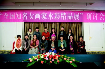 首届中国当代女性水彩画家邀请展画家和领导合影