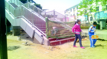本报6982110热线消息(见习记者 杨思华) 岱宗大街与青年路十字路口天桥还未正式投入使用,就有学生在上放学时,钻护网走上天桥。工作人员表示,在天桥正式使用前会树立警示标志,加固防护。