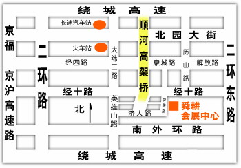济南市区的朋友,乘坐39、48、64、66、85、110、152、K100、公交车至“会展中心”站下车,路东即是。