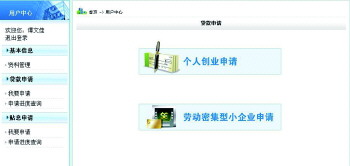 记者登录www.zbxed.com“快易贷”服务平台,点击网上申请进入用户注册页面,申请者将用户名、密码各项填齐后就完成了注册。之后进入用户中心页面,页面里包括了基本信息、贷款申请和贴息申请。点击进入贷款申请页面,用户可根据个人需要选择创业申请和劳动密集型小企业申请。