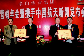 ▲中国航天基金会为泰山酒业授牌