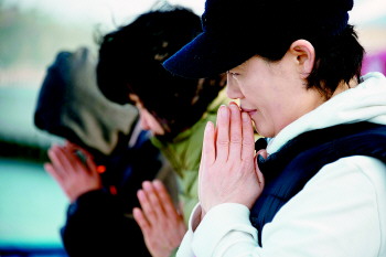 21日,失踪人员家属为亲人祈祷。 新华/法新
