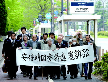 4月21日,日本东京市民向东京地方法院提起诉讼,要求判决安倍晋三参拜靖国神社违宪。 新华社发