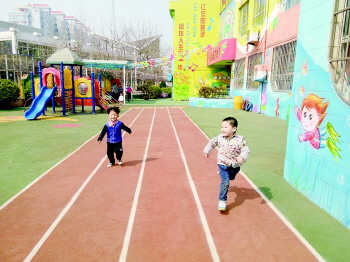 这张照片是小浩斌正在跟同学赛跑。宝宝加油,妈妈希望你永远快乐健康。