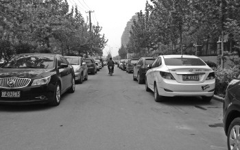 记者调查发现,不光停在这家快餐店门口,小区外的路上到处停满了车辆,其中在小区一二期西侧一条窄窄的路上,每天都停着两排车辆。