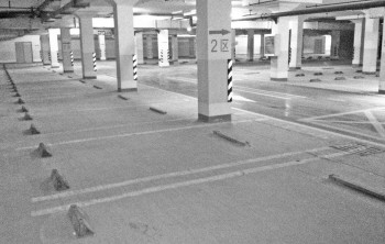 21日上午6点多,阿尔卡迪亚小区4期地下停车场很多车位空空如也。 本报记者 王传胜 摄