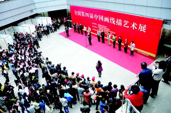 21日上午,全国第四届中国画线描艺术展在日照博物馆开幕。