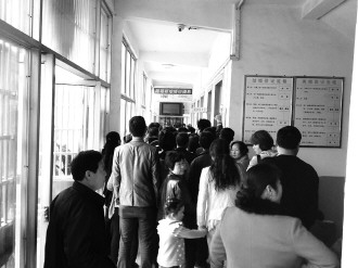 “这种状况从上周就开始了,平均每天都能办理100对左右,今天是人最多的一天,估计能办理200对左右。”市中区民政局结婚登记处的工作人员王先生告诉记者。记者了解到,出现扎堆登记的原因是最近刚出台的超生落户政策。“我们就想给孩子赶紧落上户口,但前提是得有结婚证,所以就赶来补办结婚证。”一位等待办手续的市民告诉记者。记者采访得知,这些人中,有的是来登记结婚,也有的是因为结婚证丢失要重新打印,也有的是已经结婚生子却一直没有办理结婚证的。