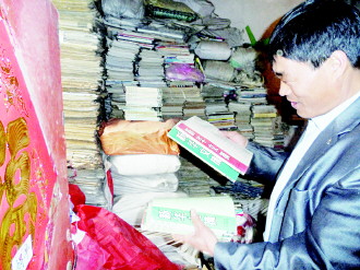 存放在于绍迎老家的书籍虽也被妥善放置,但是还是有一小部分成了老鼠的口中餐。而且因为数量众多,在书籍被分类打包完之后,于绍迎就很少再动他们。翻看他早年的一些藏书,记者发现,除了精心在书页封皮上标出购买时间和书序外,书内也有不少在阅读中标识的记号。为了节省放书的空间,本来容纳一排书的书柜硬生生的被他摆出了两排。抽出书架上摆在外面的一列书就会发现,里面一排的书籍已经有被老鼠咬过的痕迹。