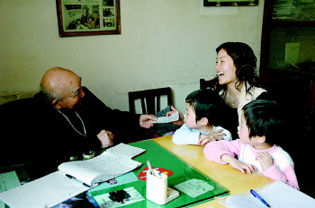 | 双胞胎母女和山崎宏的合影。 方军 摄 |