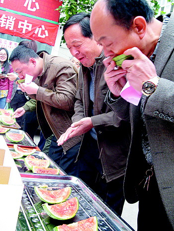 本报讯(记者 王倩) 上周六,备受市民期待的济南首届瓜果节终于拉开了帷幕,新鲜瓜果从田间地头直送进城,济阳仁风富硒西瓜、章丘高官寨甜瓜、济阳县崔寨香瓜、商河县郑路镇珍珠西瓜等亮相瓜果节。不少赶来尝鲜的市民品尝之后连连夸赞,走之前还不忘买上两箱瓜果吃。 19日一大早,不少市民就来到位于经十路22232号山东省名特优展销中心的首届瓜果节主会场内。大家在这里不仅能免费品尝新鲜瓜果,还能领取礼品、参加吃西瓜比赛。 家住槐荫区的刘女士一大早就跟家人来到瓜果节的主会场,“报纸上说这都是从田间地头直送进城的瓜果,现场还能免费品尝,我得来尝尝鲜。”刘女士边说便拿起一块济阳仁风富硒西瓜品尝,随后又品尝了商河郑路镇珍珠西瓜,“口感不错,真甜。”刘女士接着买了两箱西瓜。 在现场,各瓜果品种所在地乡镇、村负责人现场卖起了瓜果,“这是有机产品,经过了地理标志认证。”“甜度高、口味香,不管是自己吃还是送亲朋好友,都是最佳选择”……他们介绍起这些瓜果,显得更加专业。 作为瓜果节开幕活动之一,吃西瓜比赛引来很多市民参与,大家一边参加比赛吃西瓜,一边还竖起大拇指,夸赞西瓜口感好。除了济阳仁风富硒西瓜、章丘高官寨甜瓜、济阳县崔寨香瓜、商河县郑路镇珍珠西瓜,青岛莲花山瓜果专业合作社甜瓜、章丘富硒大樱桃等产品也亮相本次瓜果节。而这些新鲜瓜果也都是活动当天一大早从田间地头摘下直送进城的。 本次精品瓜果节活动时间为4月19日-27日,活动在三个会场同时展开,分别是山东新闻大厦大厅、泺源大街3号回归自然店、经十路22232号化工宾馆东后院内(山东省名特优展销中心)。市民在三个会场都可以买到瓜果节展示产品。 瓜果节结束后,本批头茬瓜的销售持续到5月初。“五一”节临近,回家时不妨捎上新鲜的头茬瓜送给亲朋好友,很甜蜜的哦。订购很简单:您可以拨打96706转2号键进行订购,也可登录96706便民网或是添加“齐鲁晚报读者俱乐部”微信(扫一扫本版右边微信二维码),编辑“预订品种名称+姓名+地址+电话+品种+数量”。对刷读者卡(信联卡)购买的读者,我们将每箱优惠5元。当然,我们也欢迎大宗团购,团购10箱以上,每箱优惠10元。以上活动不重复参与,绕城高速以内所有订单,我们的配送员都将送货上门。