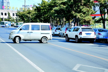 | 单黄实线的作用是禁止双方向车辆越线或压线行驶。图为一辆面包车越实线调头(资料片)。