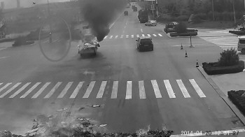 | 七个灭火器没能压住火势,交警紧急疏散来往车辆 | |