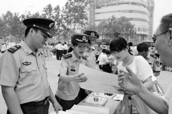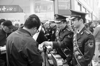 | 聊城消防上街发放资料,讲解消防知识。