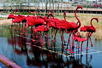 |  | ◥成排火烈鸟雕塑足以以假乱真。
