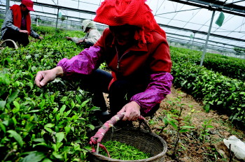 本报4月22日讯(见习记者 殷萍) 黄岛区海青新茶近日开始大量上市,当地很多村民都参与到新茶采摘工作中。由于产量增加,今年海青茶价格有所下降。据悉,茶叶采摘将持续至10月。 以盛产绿茶闻名的海青镇是西海岸地区茶园最为密集的区域,茶叶种植面积达到3万亩,目前当地海青新茶已经大量上市。21日,记者来到黄岛区海青镇河西村,村民正在茶园中采摘新茶。“大约在一周前就开始采摘了,新茶采摘的部分主要是一芽一叶,一周左右又可以长出新芽新叶。”正在采摘茶叶的海青镇双河村村民王子蕊介绍,到6月中旬,茶叶有半个月左右的休眠期,之后又可以继续采摘,采摘将持续到10月。 据了解,海青茶分大田茶和大棚茶两种,部分光照较好地段的大田茶已经提早上市。“我们的茶园在镇上北山头,光照较好,12日就已经开始采摘。”海青镇董家洼村北山茶园负责人李栋介绍,开始的时候嫩叶不多,一天能采摘三四十斤茶叶,现在每天能达到200斤左右,旺季时一天能超过1000斤。据介绍,目前当地主要生产龙井茶。“茶叶主要销往本地,当地有很多出售海青茶的茶庄,今年茶叶产量较好,但价格有所下降。”李栋介绍,由于今年茶叶产量增加,目前很多村民参与到新茶采摘工作中。“在茶园采摘的以中年妇女居多,每天从早上6点多开始采摘,一直到下午5点。”王子蕊介绍。 由于今年海青茶产量增加,其价格总体下跌。“去年是个暖冬,茶叶没有遇到冻害,加上当地茶园管理水平不断成熟,当地茶叶增产近三成,产量高了价格就低了。”黄岛区茶叶技术指导站站长张续周介绍。“价格在一千元以上的龙井茶降价幅度达到两成,接到的订单也没有往年多。”海青镇河西茶厂负责人李传村介绍。