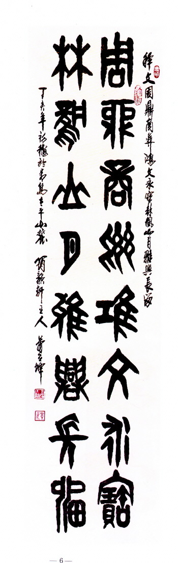 肖丕坤先生1946年生于青岛,少年时他的书法已闻名乡里,参加工作后不论是担任一般干部还是正局级领导,从未放弃过对书法的学习和研究,常年临池不断。先后受教于修德、杨在春等诸位名家,耳濡目染受益良多。其书师法唐楷,上溯六朝碑帖,特别对《郑文公碑》、《张猛龙碑》用功极多。肖丕坤先生不仅尊古厚今,同时又注重从近现代书法大师的作品中广取浦汲,不断丰富自己,逐渐形成了遒劲雄厚、潇洒酣畅的艺术风格。 肖丕坤先生是一位率真奔放的人,有一种豪气在身,同时他又在文学、哲学和戏剧音乐等方面都有较深的涉猎,这一点从其书法艺术的语言中可以看出他的追求和艺术修养。近年来其作品多次参加全国、省、市展并获奖,同时在全国诸多报刊杂志选登,有近百件作品被日本、美国等国家和我国港澳地区政府及收藏家所收藏。1997年其作品还作为中国青年联合会、《中华儿女杂志社》出访香港时的馈赠礼品,为董建华先生收藏。2004年获亚太地区名家书画金铎奖。 齐鲁晚报《今日青岛》书画收藏版投稿邮箱:qlwbjrqdxmt@126.com 联系电话:0532-58760585