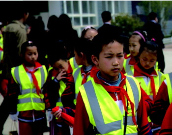 | 放学后,学生们身着荧光衣陆续走出学校。 本报记者 张萍 摄 |