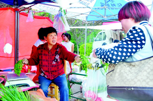 本报4月22日讯(见习记者 孙秀峰) 最近,有很多市民反映城区吉泰阳光小区南门有一位卖菜的大妈,只要市民买她的菜,她就送给购菜市民一把香菜,附近的市民都亲切地称呼她为“香菜大妈”。 “香菜本来就是一种配菜,主要是为了出味,买多了吃不上就容易坏掉,想买少点吧又不值得,索性就送一把给买菜的市民,这样既方便了市民,也能拉回头客。时间久了都熟了,很多市民都愿意到我这儿买菜,我从心里也高兴。”“香菜大妈”姓曹,今年58岁了,家就住在吉泰阳光小区,在这条街上卖菜已经两年了。 “每天我送给买菜的市民大约20元的香菜,咱也不差这点钱,就是图个高兴,有事干,换个馒头吃就行。”曹大妈对记者说,“孩子都长大了不用我看了,每天很无聊就寻思找点事干,有天从阳台往下看,发现在这条街上摆个小摊卖菜不错。” 有了这个想法后,曹大妈就跟儿子儿媳说了,儿子儿媳也很同意,就给她买了个秤。“一开始我也不认字,也不会算账,更不会用电子秤,就让儿媳腾出两天时间教了教我。刚卖菜的时候让儿媳跟着算账,久而久之,我也就能自己卖菜了。” 一开始,曹大妈每天带着三五斤土豆、茄子、西红柿等家常菜来摆摊,后来发现来买菜的人挺多,卖得也挺快,就去六街多采购了些菜。刚开始卖菜也有很多辛酸,“刚开始那个月我收了四张一百元假币,回到家就哭了。”曹大妈说,虽然损失了四百块钱,但她没有就此放弃,“这菜我还要继续卖下去,很多市民还等着我送他们香菜呢。” 曹大妈菜摊旁卖五谷杂粮的王阿姨说:“我们是一起开始摆摊的,曹大妈可是为我们凝聚了不少人气呢,‘香菜大妈’这个称呼她当之无愧。”