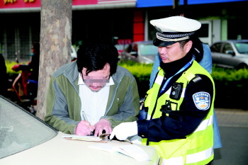 22日上午7时30分左右,在张店新村西路与世纪路路口,张店交警大队民警对一位斑马线前不主动礼让行人的轿车驾驶人开出了罚单,这是3月18日本报联合淄博市交警部门开展“礼让斑马线”活动以来,交警部门开出的首张“不礼让罚单”。下一步交警部门将继续加大查纠力度。 本报记者 孙慧瑶 通讯员 王玲 徐建彬 摄影报道