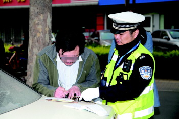 | 违规驾驶员在处罚决定书上签字。 本报通讯员 王玲 摄 |