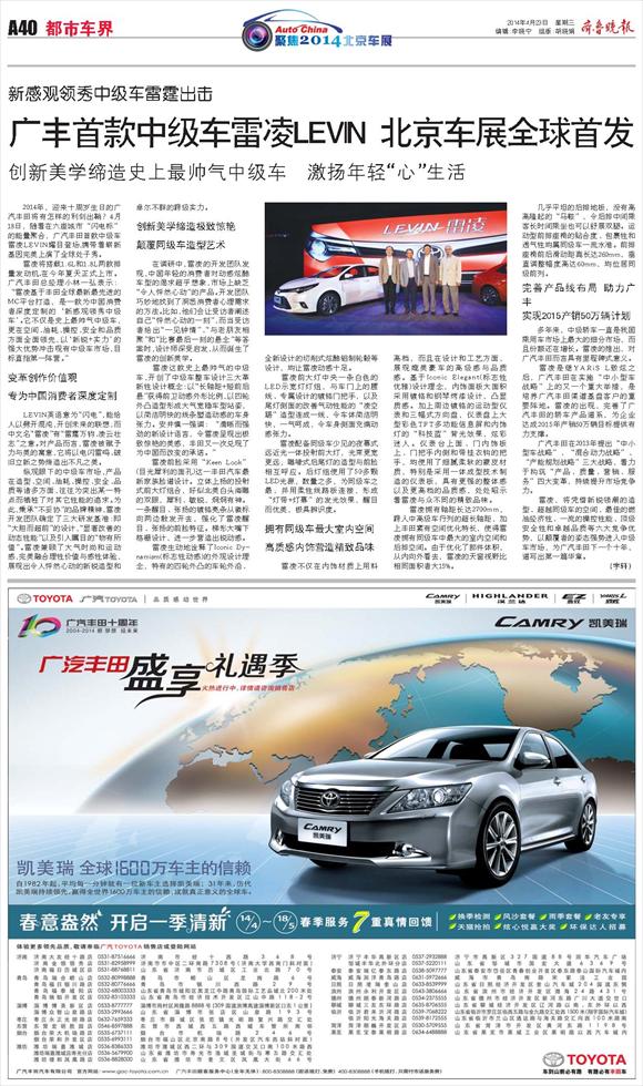 广丰首款中级车雷凌LEVIN 北京车展全球首发