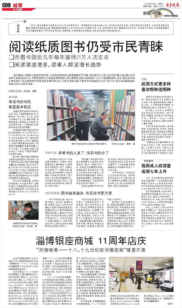 □市图书馆近几年每年接待21万人次左右□阅读渠道增多,读者人群呈增长趋势