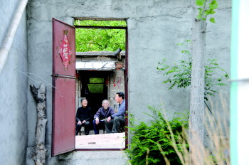 | 24日,刘庆民坐在卫生室门口同村里老人聊天。 本报记者 李岩松 摄 |